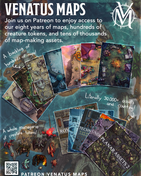 Venatus Maps is a fantasy cartographer focused on creating maps and accessories for tabletop RPGs. Starting from homebrew worlds crafted for personal campaigns, Venatus now produces standalone maps designed to help game masters bring their own stories to the table.
